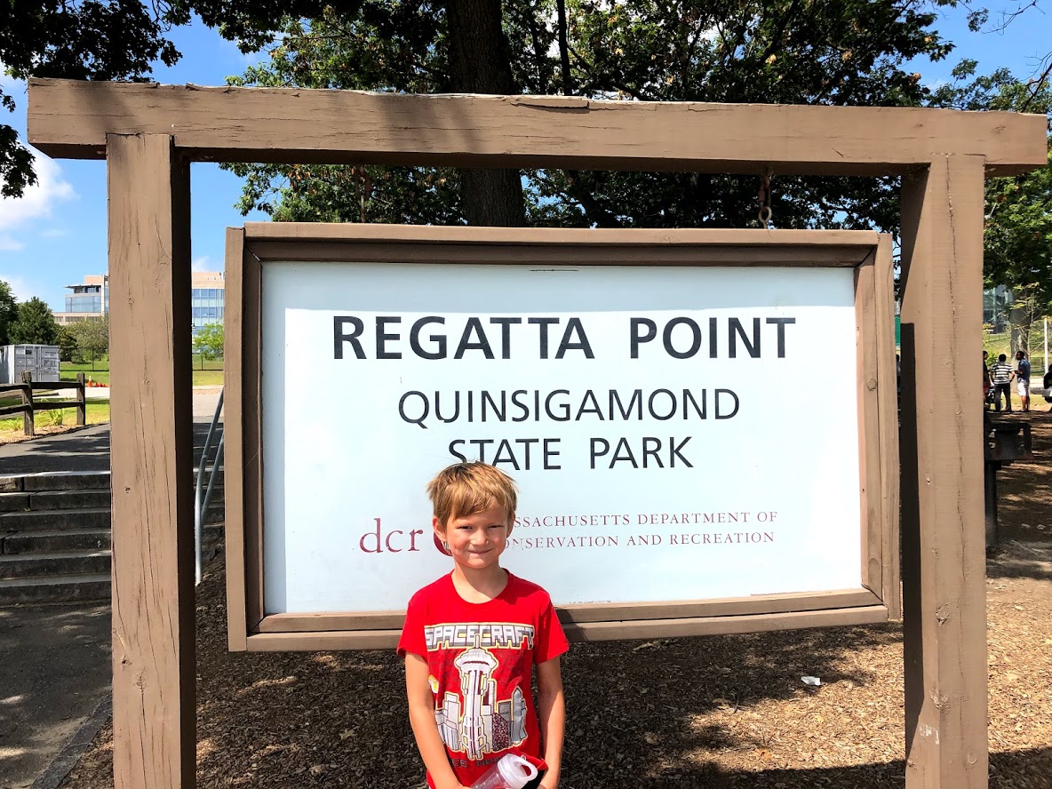 We started by pulling into Regatta Point park just off of Route 9, which has a small beach and a good boat rental. The rental offers sailboats, kayaks, paddleboats, and paddle boards. We opted for 2 large kayaks with Diana and Liam together, while I took Ryan and Miles (our 2 younger boys).
