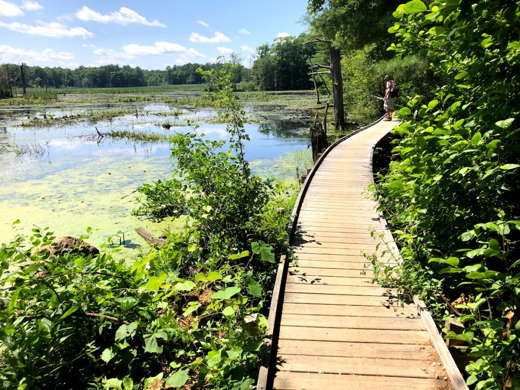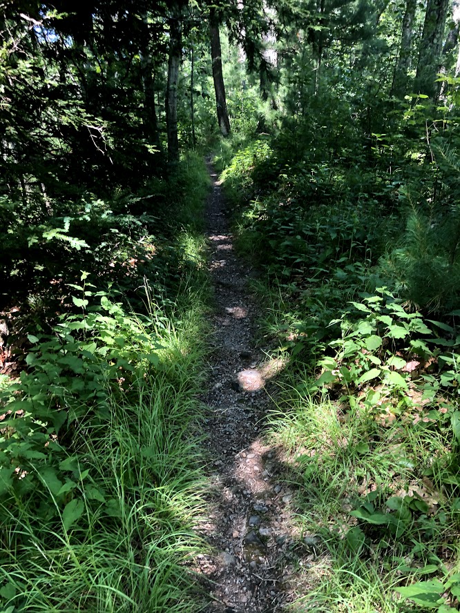 This trail is 3 miles roundtrip, and the first section is a flat gravel road to a powerline crossing, after which it enters the woods.